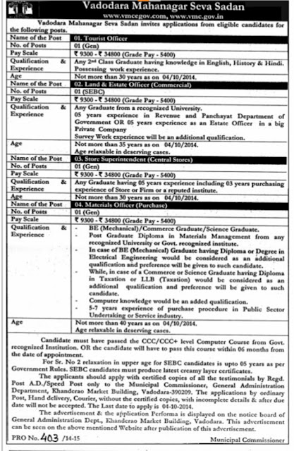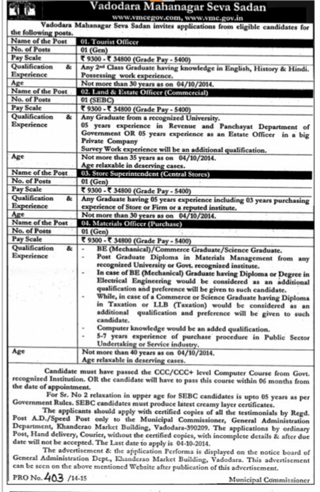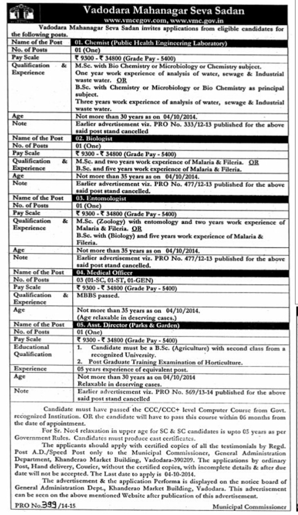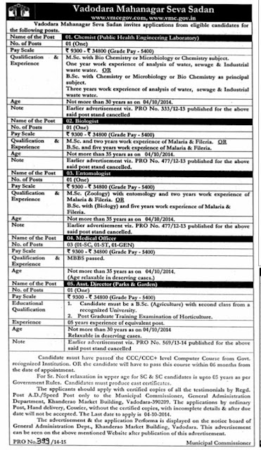 VARIOUS RECRUITMENT IN VADODRA MUNICIPAL CORPORATION ......!